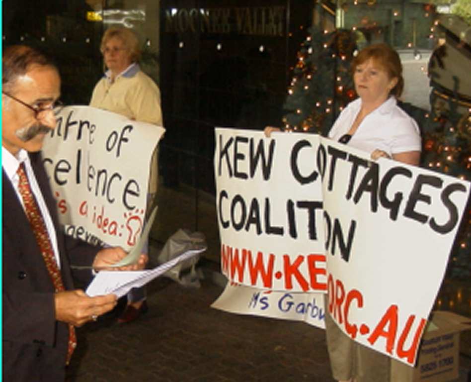 Kew Cottages Coalition, President, Brian Walsh, said the Government suddenly appeared to be panic stricken that the Kew Cottages issue was getting out of control politically, and worried that private property developers would pull out of bidding for the Government's multi-million dollar private residential development project at Kew.