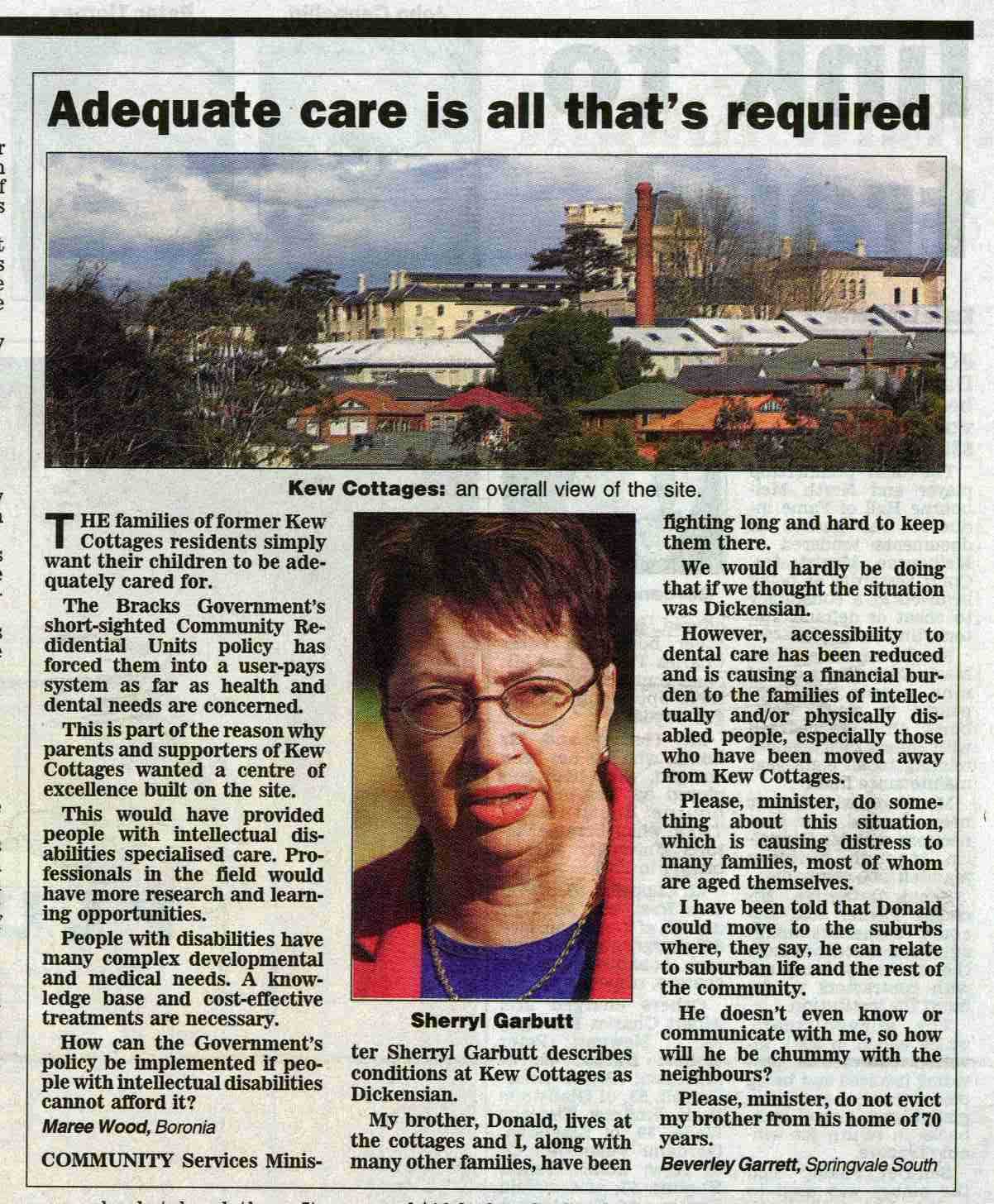 (Reprinted: Kew Cottages Parents' Association Newsletter, February 2004)URL: http://kewcottages.alphalink.com.au/february04.pdf